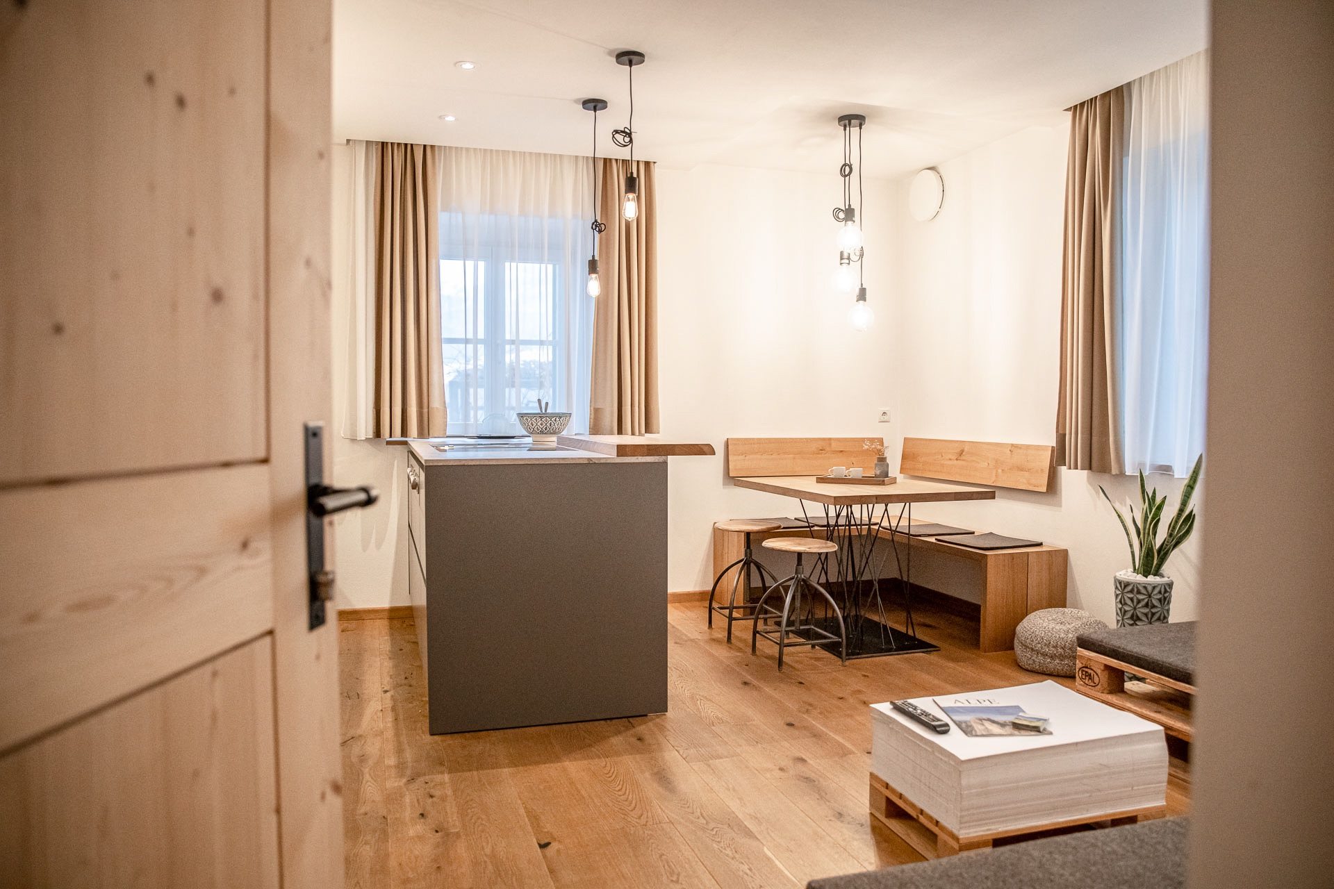 L’appartamento è arredato e con pregiati materiali naturali. I letti in legno massello di pino cembro e alcune pareti in argilla creano un ambiente accogliente, positivo e rilassante. Per chi lo desidera, è possibile prenotare anche la colazione nella nostra comoda stanza di soggiorno.