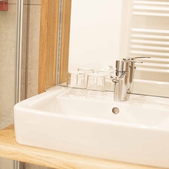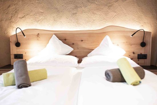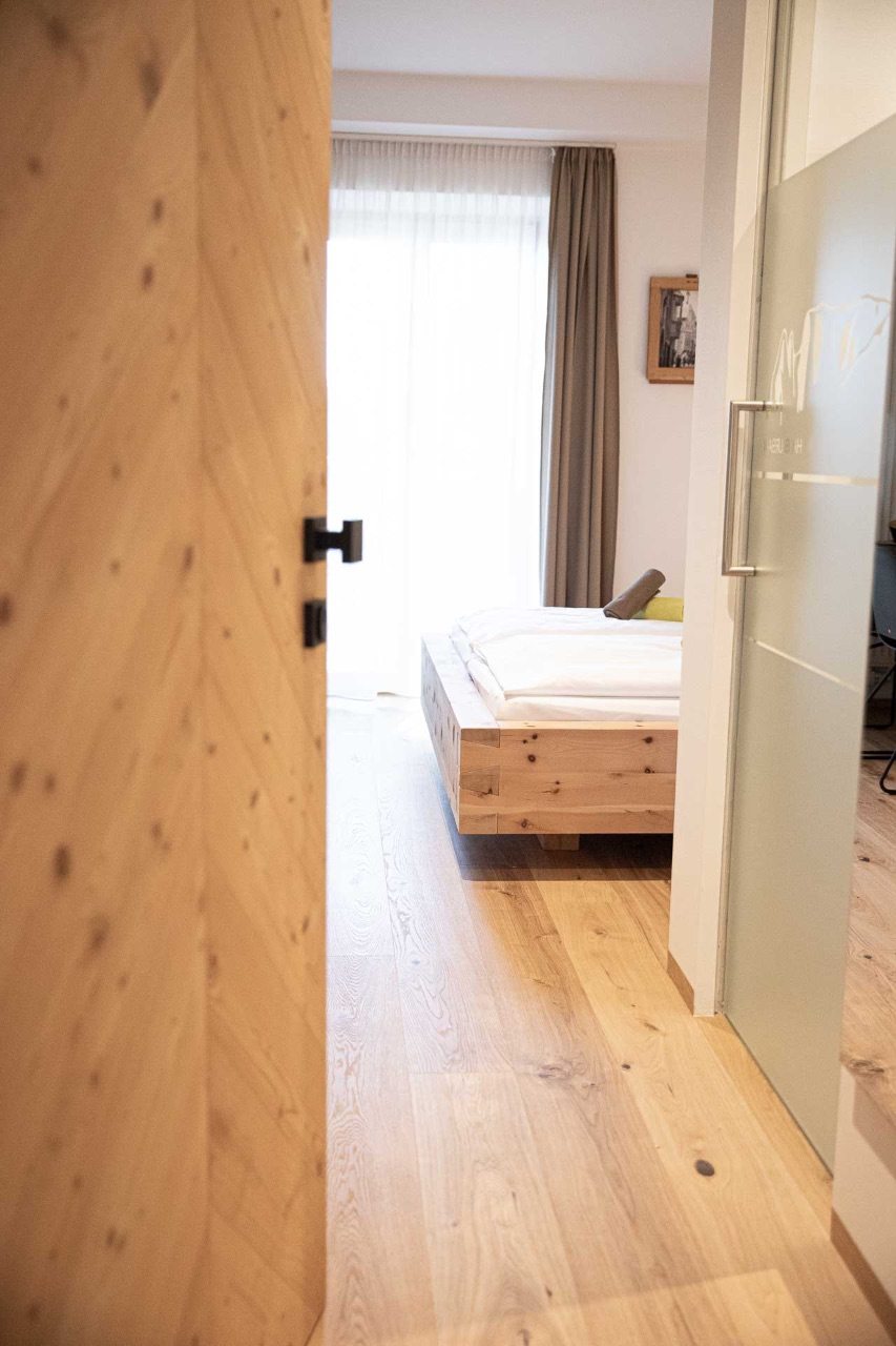 Per assicurare un clima abitativo sano e confortevole, è stata data particolare importanza all’uso di materiali naturali: letti in legno massiccio di cembro, pareti in argilla e un sistema di ventilazione intelligente favoriscono il relax e il benessere. Su richiesta è possibile aggiungere un ricco pacchetto colazione.